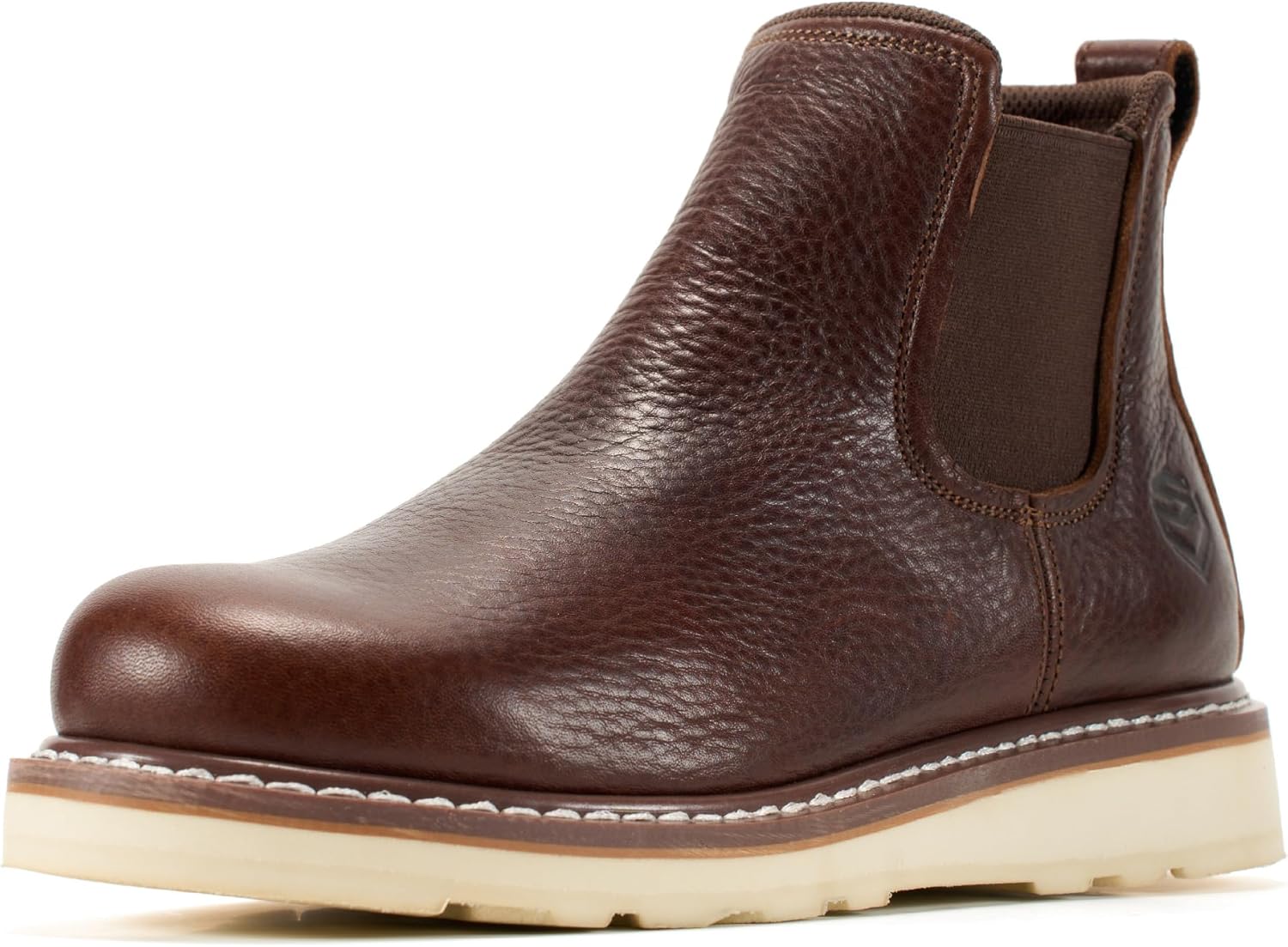 SUREWAY Men's Slip On Chlesea Work Boots for Men - Soft Toe,Lightweight Comfortable,Full Grain Leather,Slip-resistant Wedge Sole