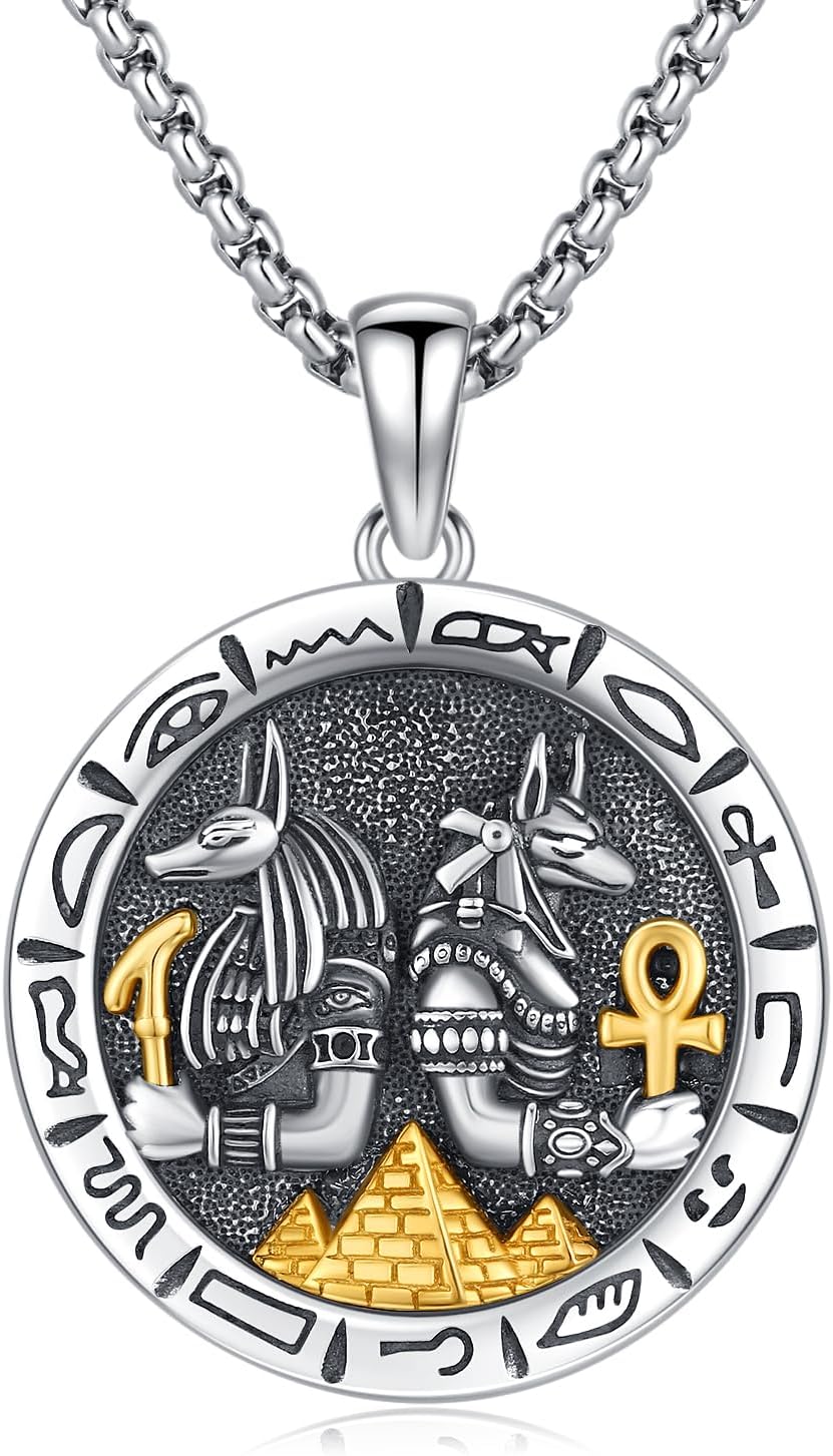 Egyptian Necklace for Men 925 Sterling Silver Anubis/Bastet Pendant Amulet Jewelry Gifts for Father's Day Birthday Christmas
