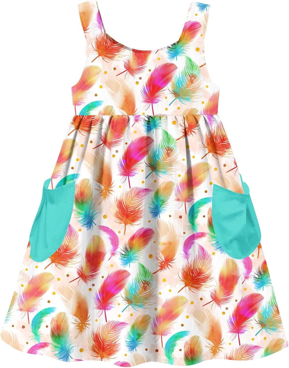 Vieille Little Girls Sleeveless Dress Cute Summer Sundress with Pocket 2-7 Years