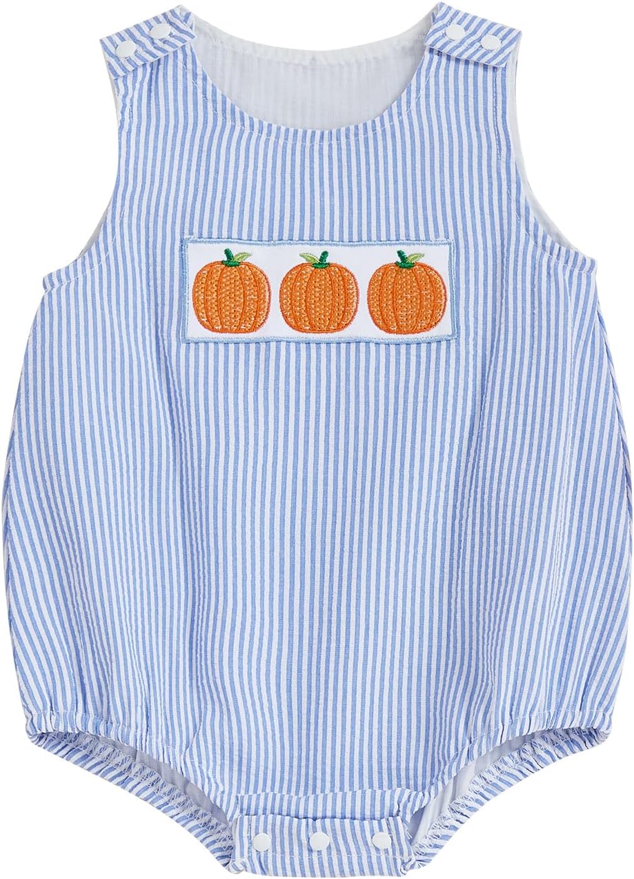 Baby Boy Girl Pumpkin Patch Outfits Newborn Plaid Smocked Bubble Romper Halloween Outfit Infant Thanksgivng Clothes