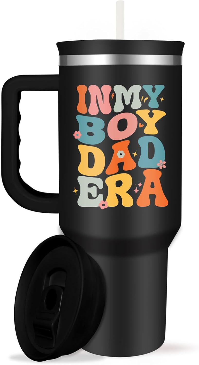 Boy Dad Tumbler with Handle Dads Gifts from Sons In My Boy Dad Era 40oz Insulated Coffee Tumbler with Straw and Lid for Dads at Christmas Father's Day