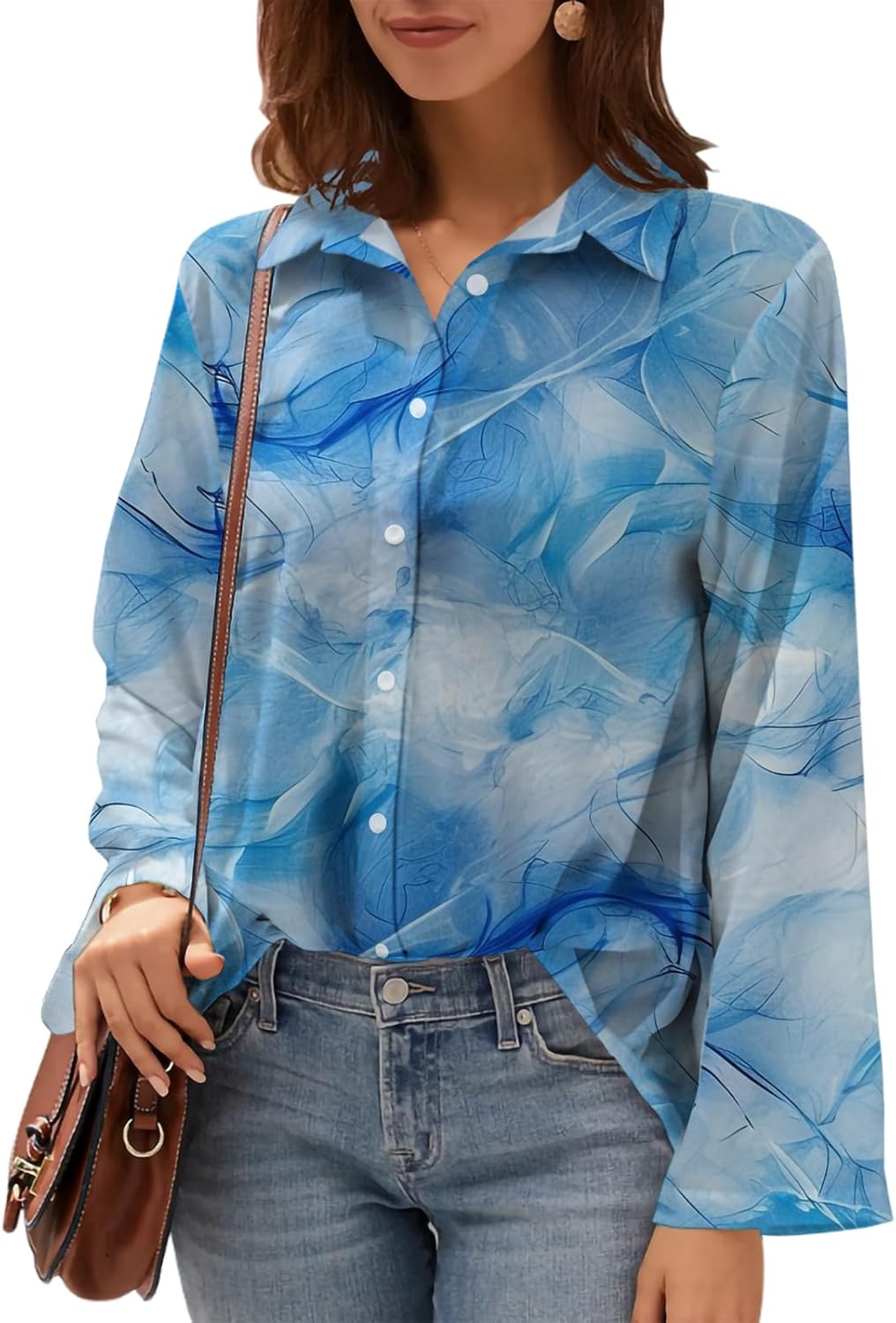 Womens Button Down Blouse Long Sleeve Collared Shirt Loose Fit Dressy Tunic Top for Work Office Casual Wear