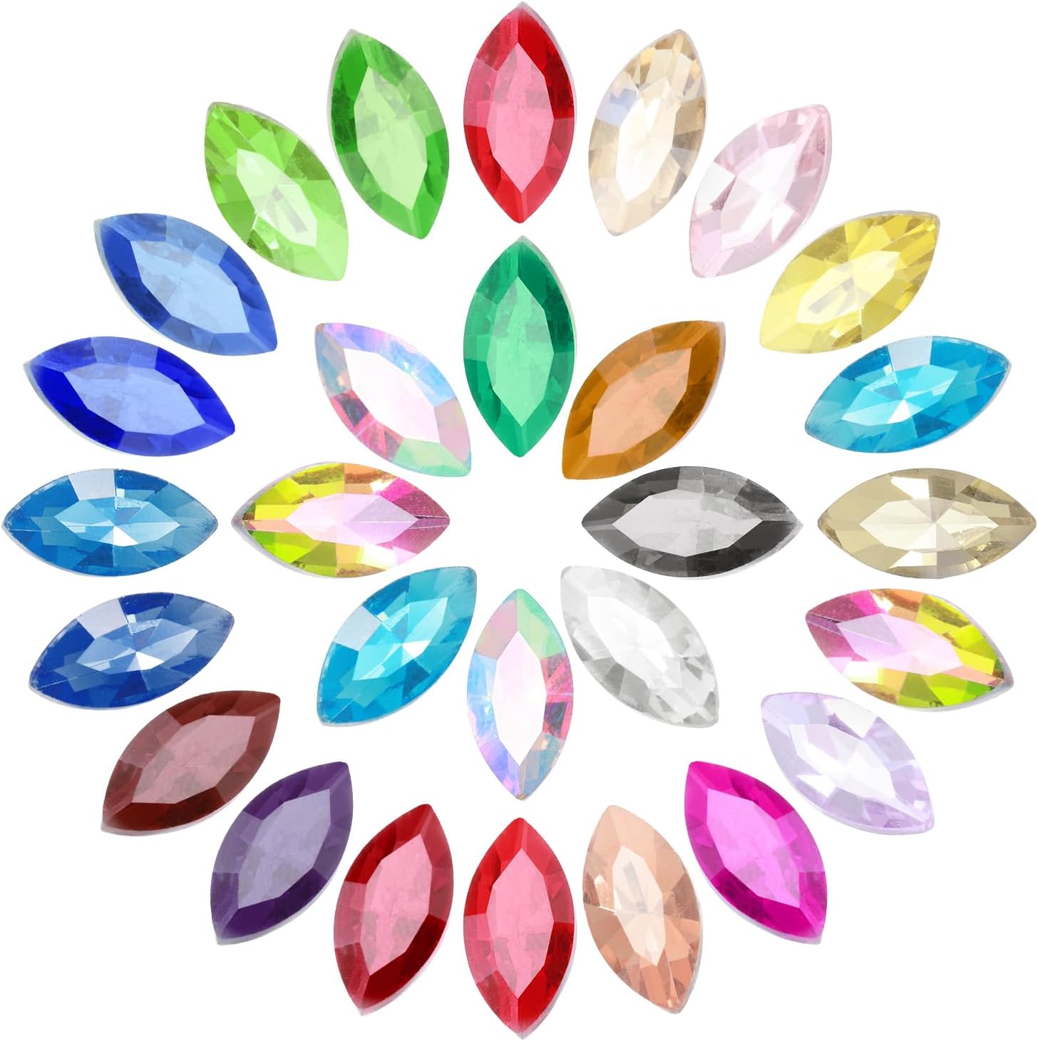 MECCANIXITY 100Pcs Horse Eye Shape Rhinestones, 4 x 8 mm Point Back Rhinestone Beads for Jewelry Making Crafts Costume Crystal Embellishments, Multicolored