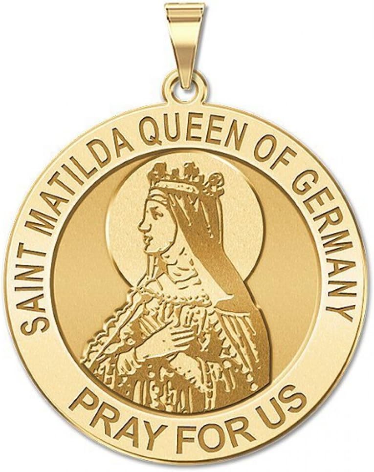 PicturesOnGold.com Saint Matilda Round Religious Medal - 3/4 Inch Size of a Nickel in Solid 14K Yellow Gold Pendant - Protection Jewelry Christian Gifts for Men & Women
