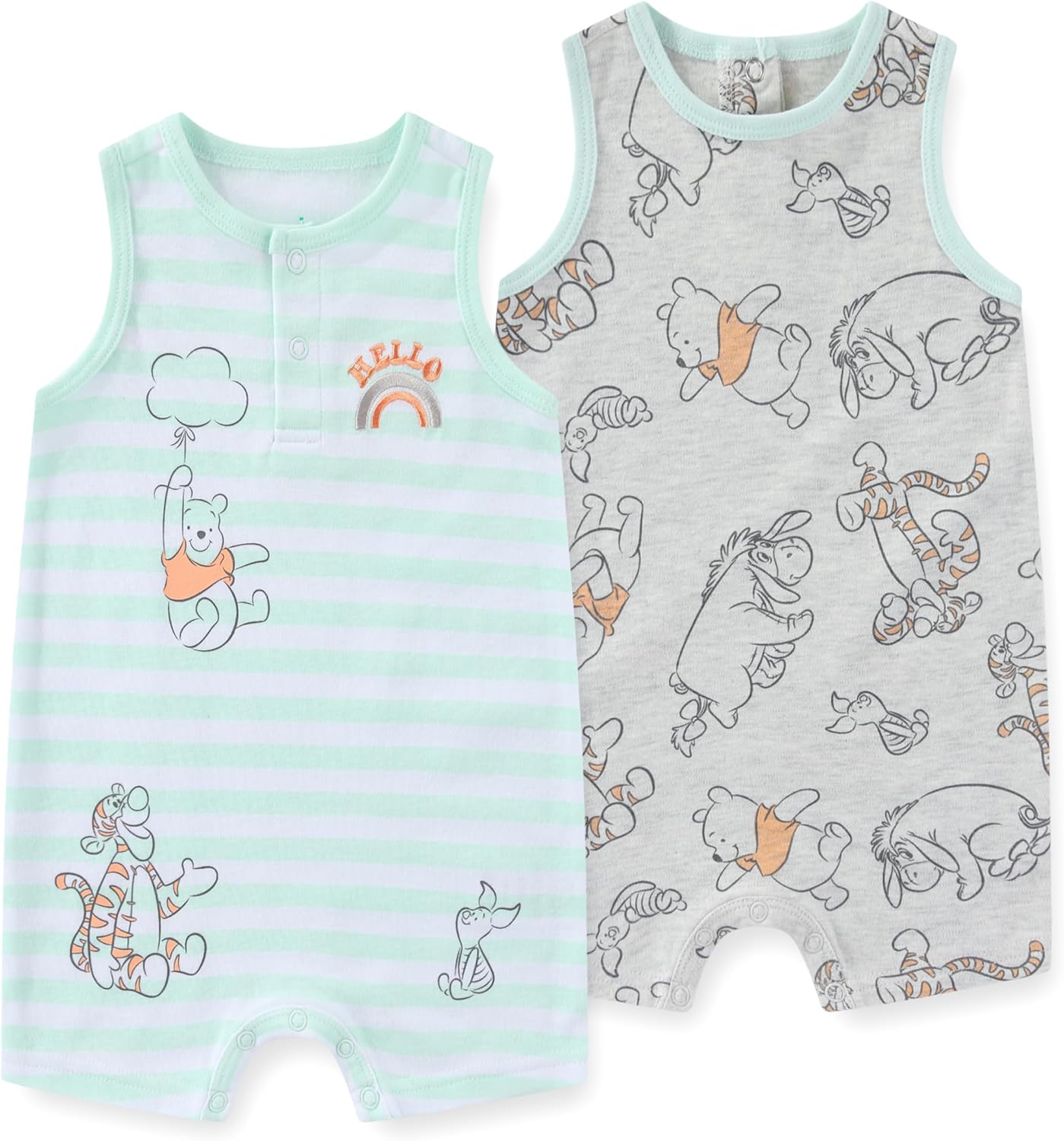 Disney Winnie the Pooh Baby Boys 2 Pack Tank Top Romper for Newborn and Infant