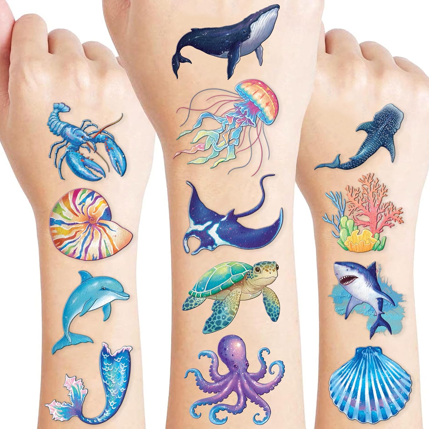 - Creative and Fun: This Ocean Sea Animal Shark Whale Crab Fish temporary tattoos set includes a variety of playful and cute designs, encouraging your child's imagination and creativity. Bring nonstop joy to the whole birthday or party. Make your kids receive full of expectation and exploration in every festival.