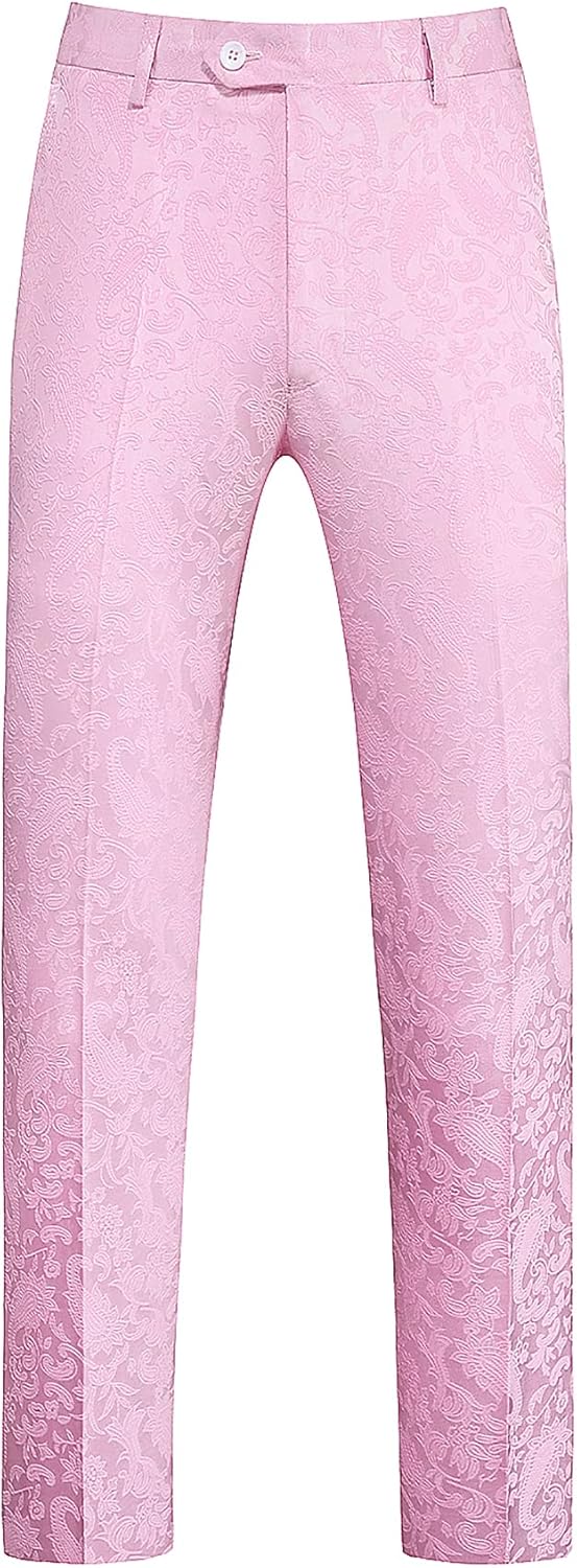 Mens Jacquard Floral Dress Pants Slim Fit Tuxedo Suit Pants