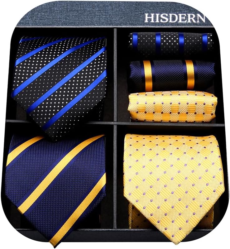 HISDERN Mens Ties Extra Long Tie and Pocket Square Set 63 Inch XL Tie Pack Collection Present Box Necktie Lot 3 PCS