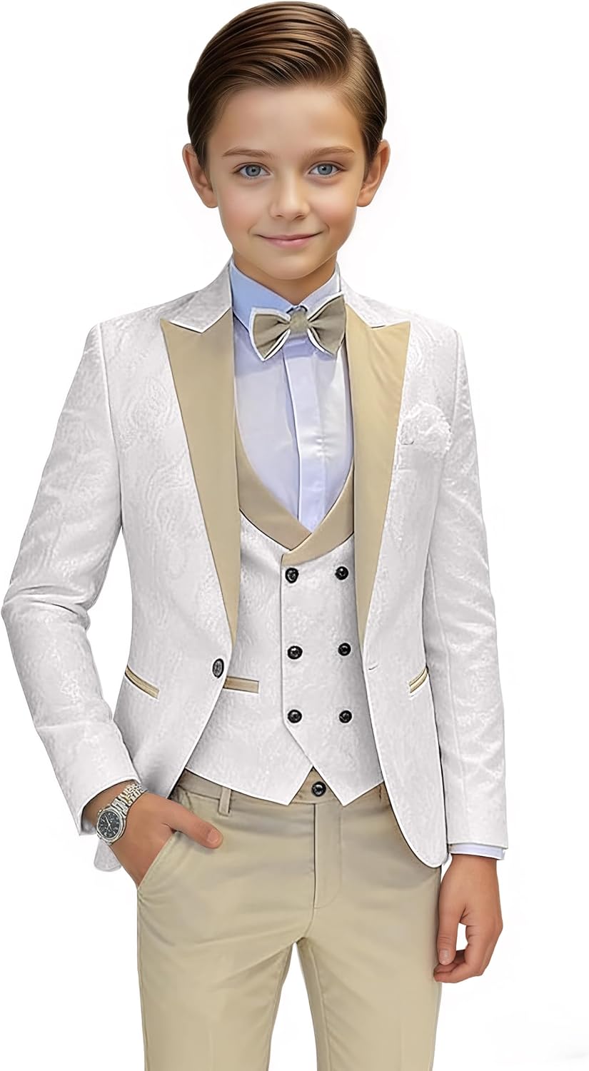Suits for Boys Floral Jacquard Boys Suit 3 Piece Peak Lapel Tuxedo Suit Set Formal Kids Outfit for Wedding