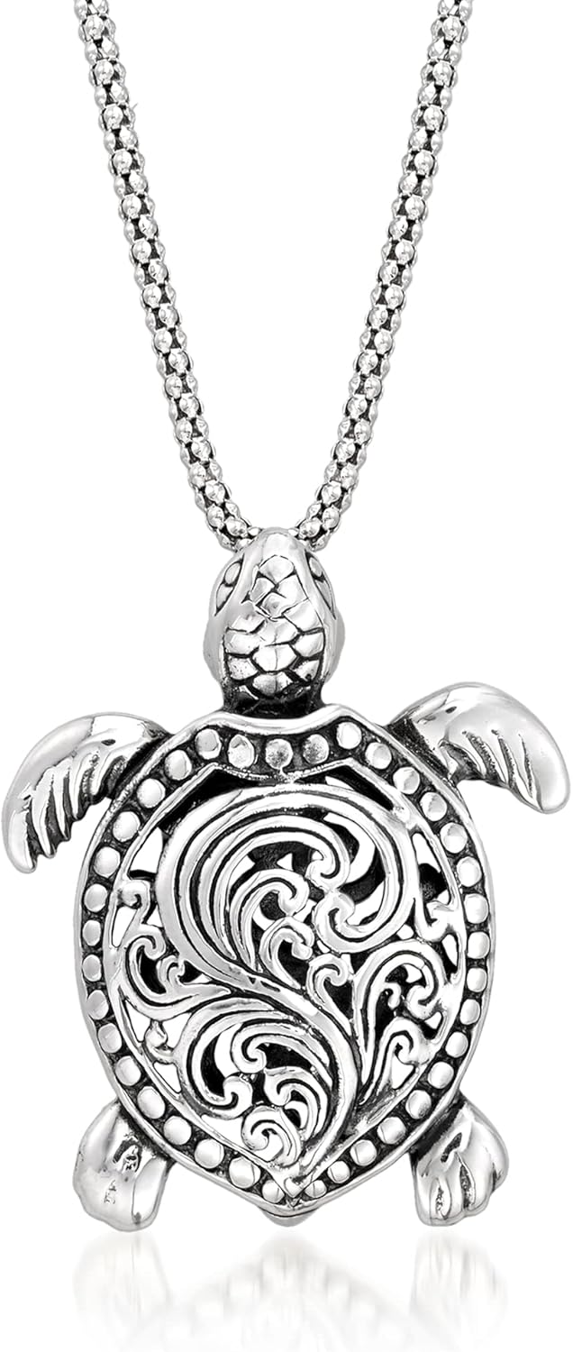 Ross-Simons Sterling Silver Bali-Style Turtle Pendant Necklace