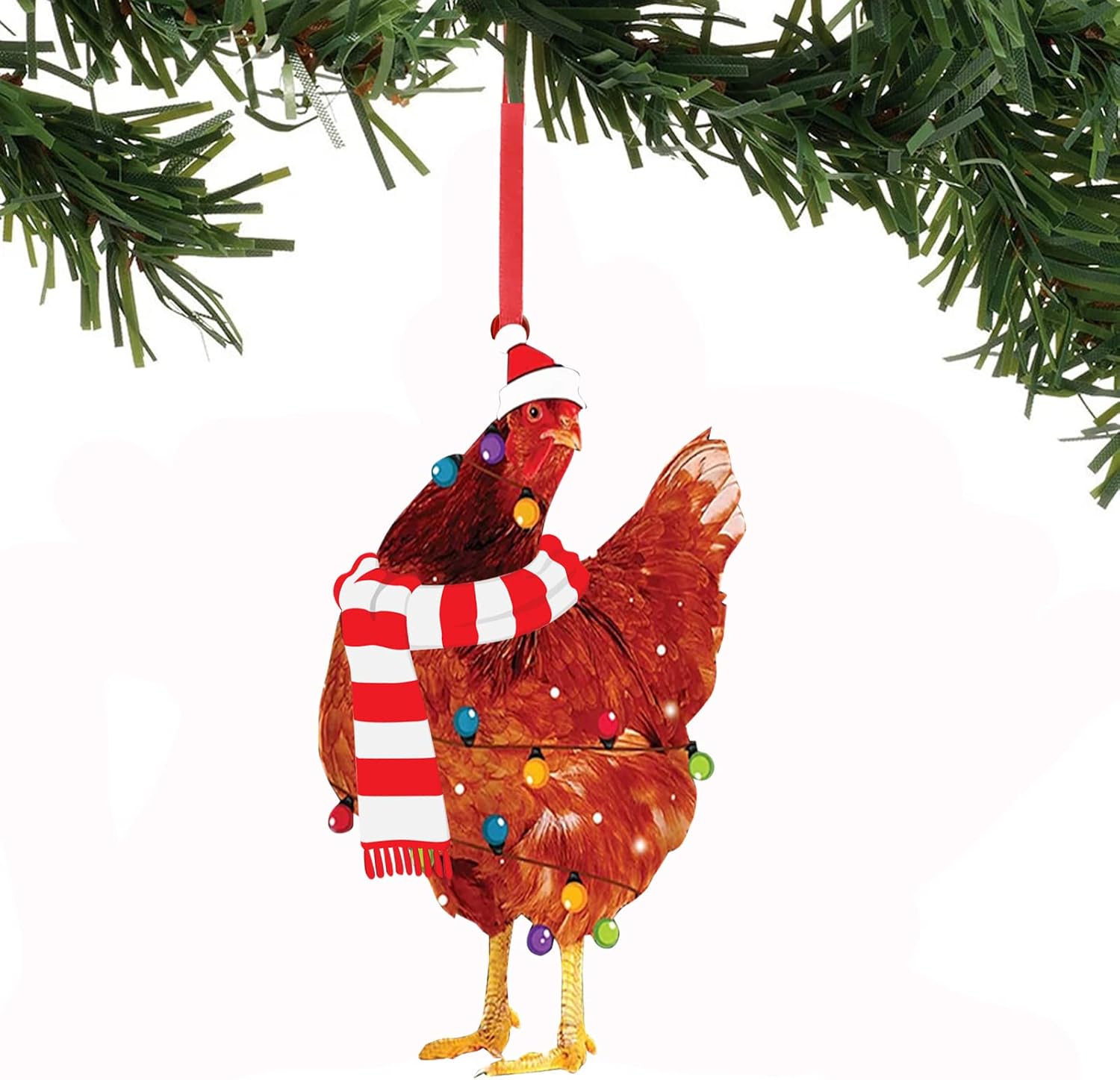 1PC Christmas Chicken Ornament Funny Scarf Chicken Holiday Decoration Chicken Ornaments for Christmas Tree Outdoor Hanging, Easy to Hang Suitable for Christmas (05)