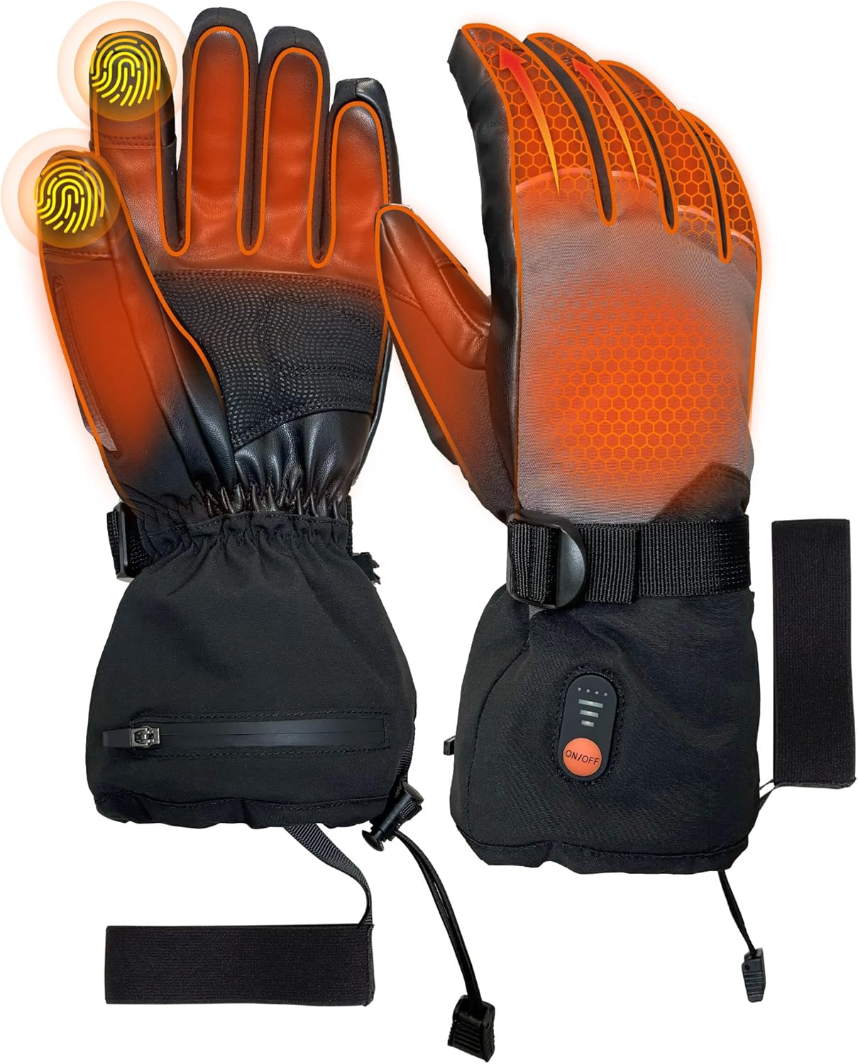 - FULL COVERAGE HEATING: Featuring full-package heating that extends from the back of your hand to your fingertips, these electric gloves maximize heat retention with multi-layer insulation and thermal barriers, it provide consistent warmth throughout. No more cold fingertips when you're outside in freezing temperatures, whether you're working in the yard, or just enjoying a winter stroll.