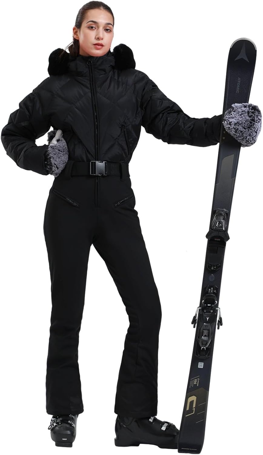GSOU SNOW Womens Ski Suits Down One Piece Snowsuit Waterproof Snowboard Jumpsuits Winter Ski Outfit