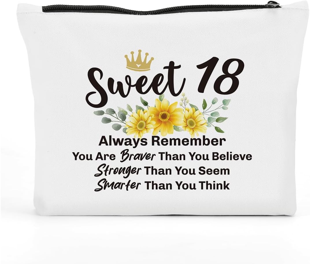Funny 18th Birthday Gifts for Girls Sweet 18 Gifts Makeup Bag, Happy Anniversary 18th Birthday Party Supplies Decorations for Girls Makeup Pouch, 18 Year Old Girl Birthday Gifts Cosmetic Bag