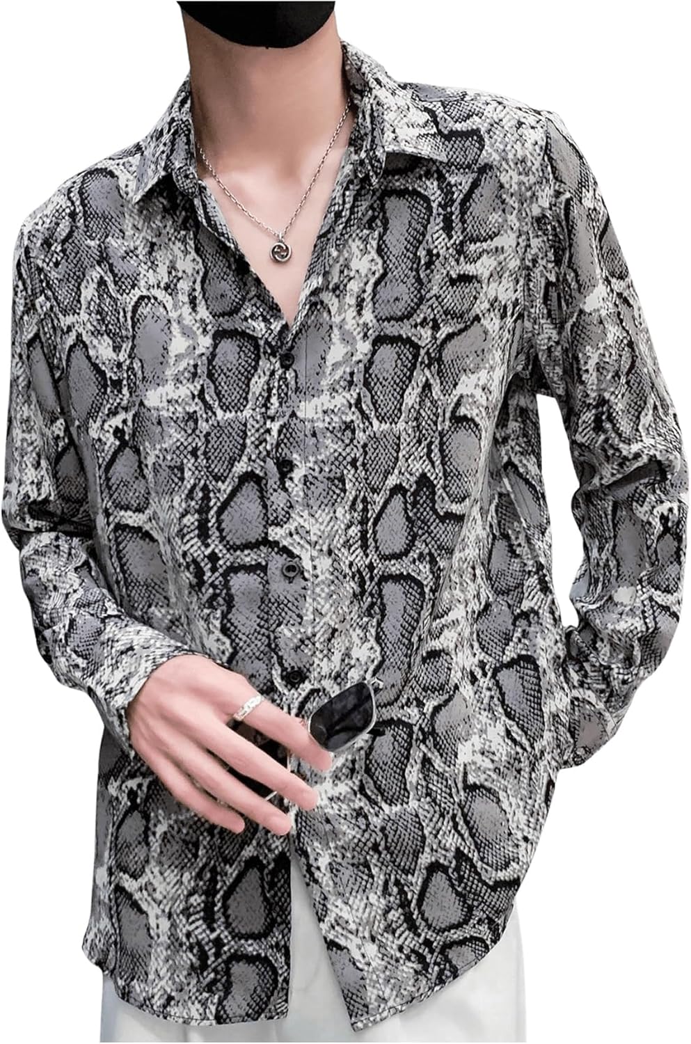 Floerns Men's Snakeskin Print Long Sleeve Discos Shirts Button Down Casual Shirts