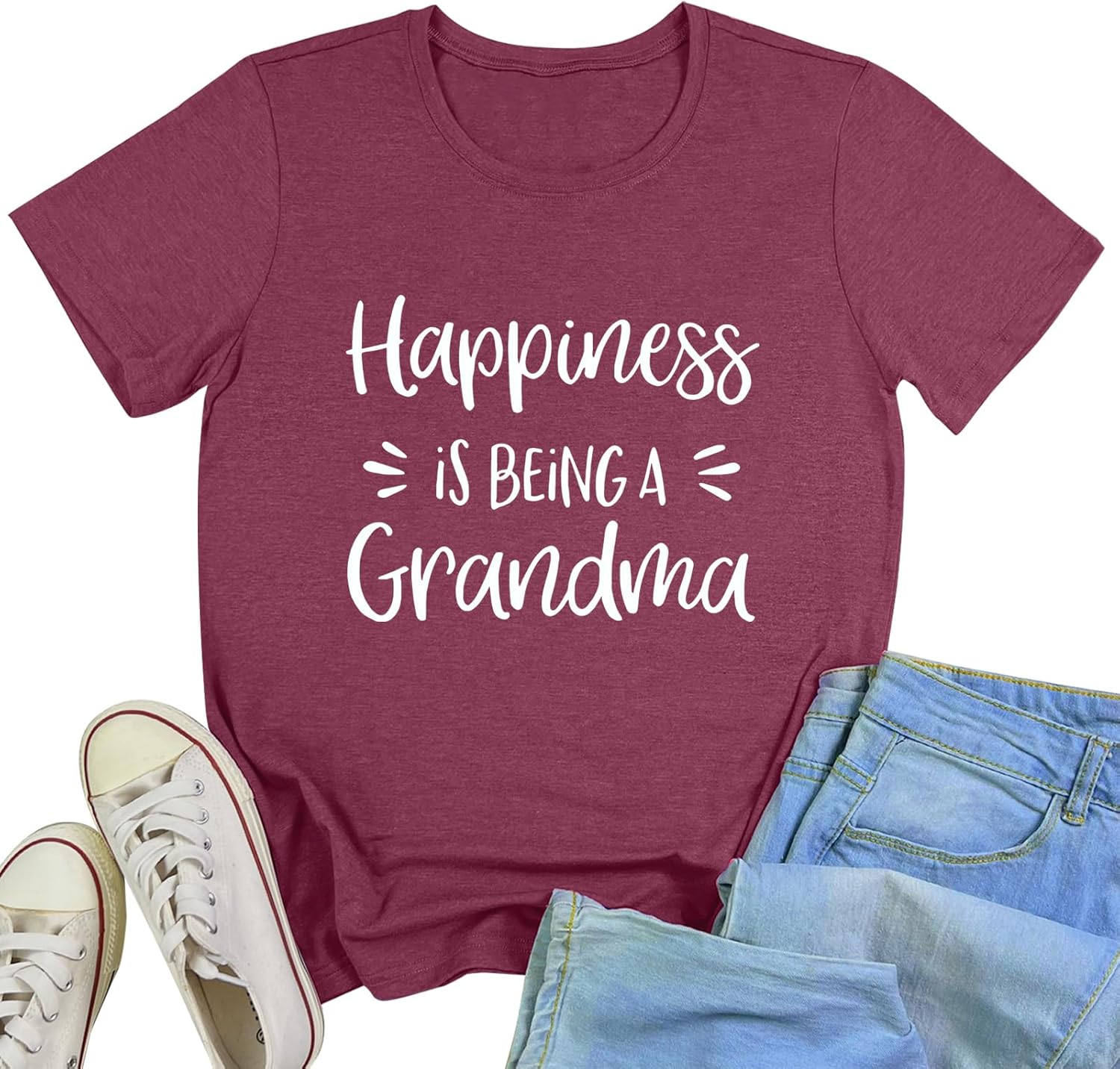 YITAN Women Happiness is Being Printed Graphic Tee Tops