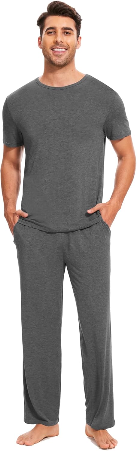 GYS Bamboo Viscose Men's Pajama Sets Short Sleeve Crew Neck Lounge Sets with Pockets