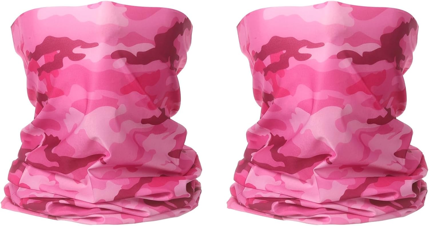 HARFINGTON 2pcs Summer Cooling Neck Gaiter Sun Protection Face Mask Fishing Neck Gaiter Unisex Sunscreen Breathable Bandana for Fishing Outdoor Sports, Camo Pink