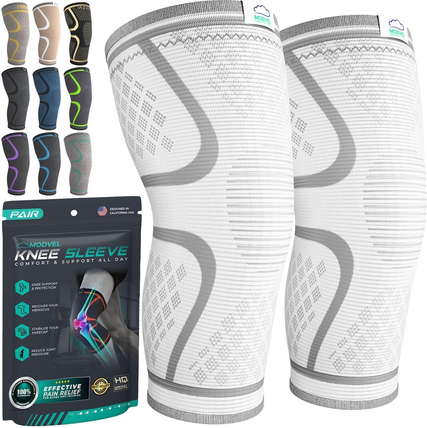 Modvel Compression Knee Brace for Women & Men - 2 Pack Knee Brace for Women Running Knee Pain, Knee Support Compression Sleeve, Workout Sports Knee Braces for Meniscus Tear ACL & Arthritis Pain Relief
