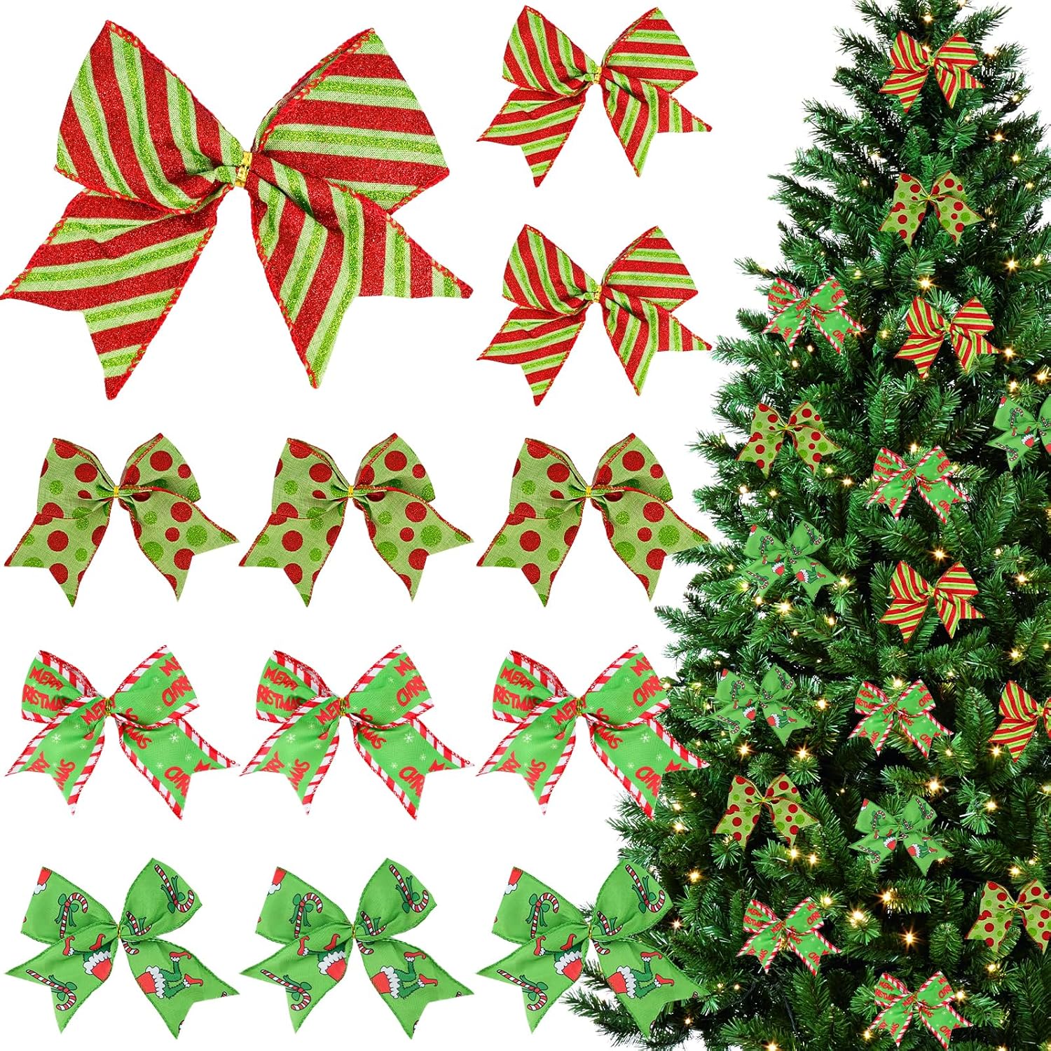 ZWIN 12 Pcs Christmas Bows Christmas Tree Ribbon 6 inches Red and Green Christmas Bows for Tree Ornaments Wreath Gift Wrapping Wall