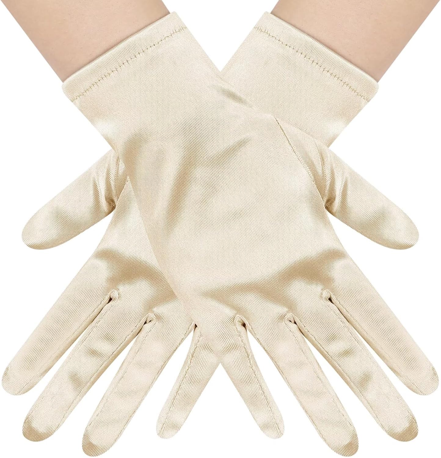 Women's Short Satin Gloves Wrist Length Opera Tea Party Gloves for Wedding Bridal Prom Banquet Costume