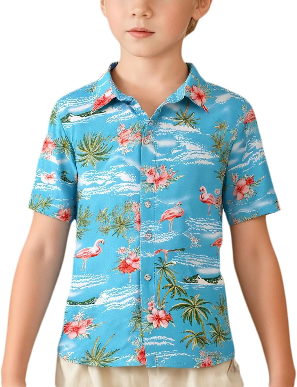 SSLR Big Boys Hawaiian Shirt, Kids Hawaiian Shirt, Flamingos Shirt Short Sleeve Luau Shirt for Kids