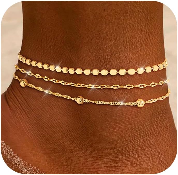 Gold Silver Ankle Bracelets for Women 14K Gold Plated Anklets for Women Waterproof Cuban Link Heart Chain Anklets Set Non Tarnish Dainty Layered Anklet Bracelets Summer Beach Jewelry