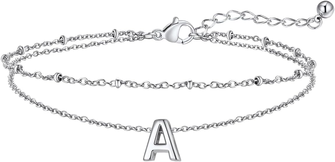 FaithHeart Initial Ankle Bracelets for Women, Waterproof 14k Gold Plated Initial Anklets Non Tarnish Stainless Steel Layered Anklet Summer Beach Foot Jewelry