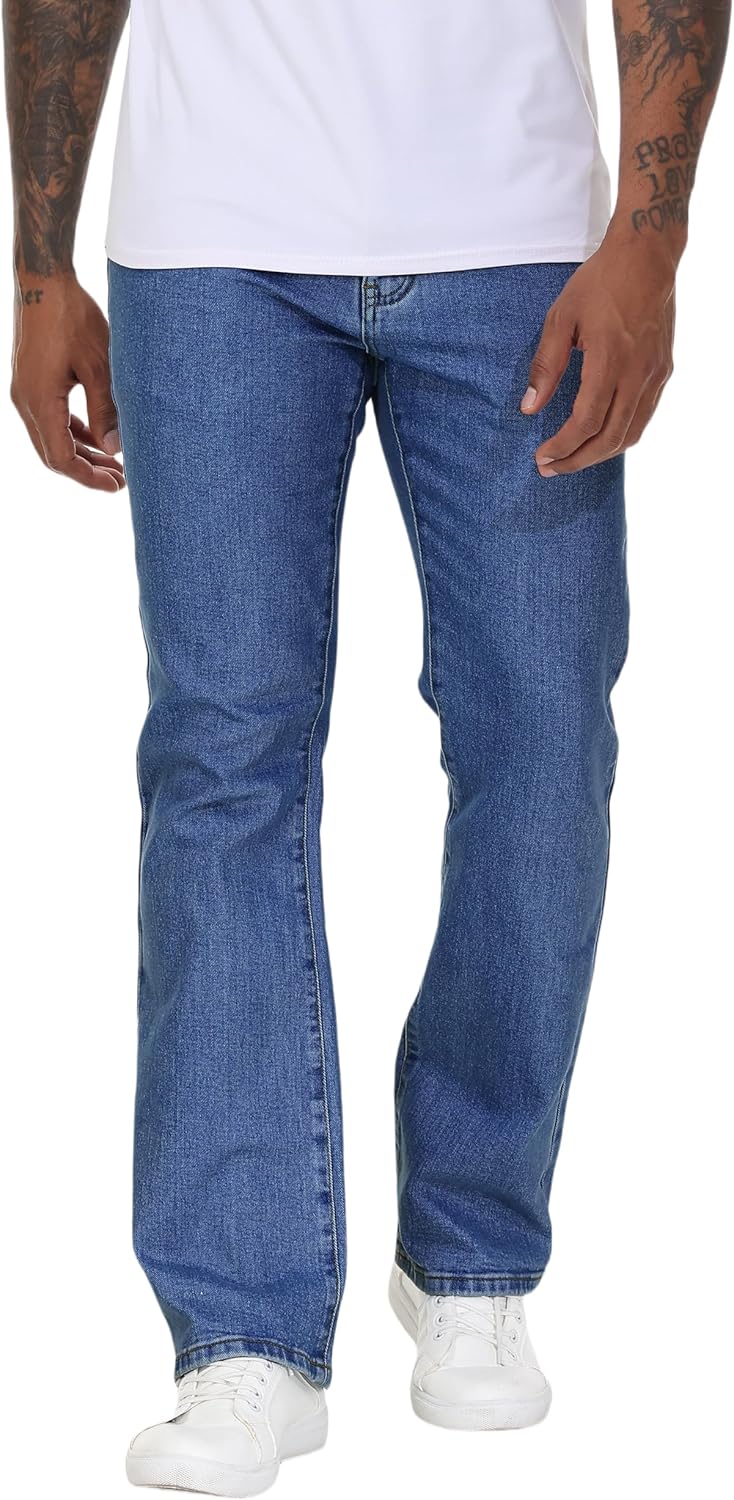 Men's Stretch Regular Fit Bootcut Flared Jeans Cotton Fashion Comfort Flex Waist Denim Pants