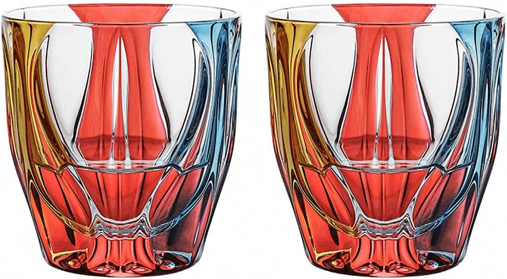 MAGCOLOR Hand painted Crystal Colorful Whiskey Glasses Set of 2, 11 oz Old Fashioned Drinking Glassware, Premium Barware, Scotch, Bourbon & Cocktail Rocks Glasses, Perfect Whiskey Gifts for Men.