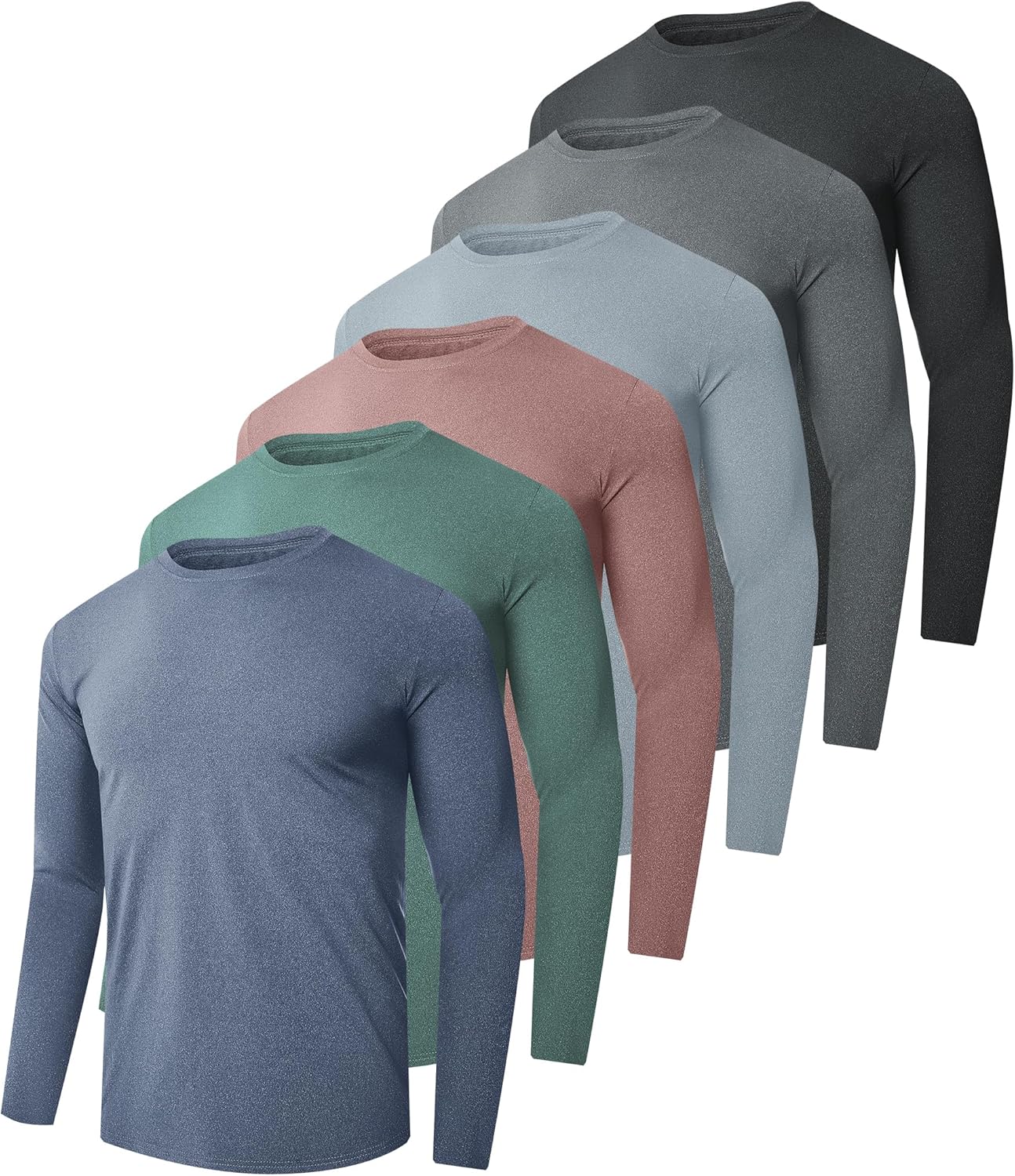 6 Pack Men Dry Fit Workout Long Sleeve Athletic Gym UPF 50+ SPF UV Sun Protection Quick Dry Lightweight Shirts