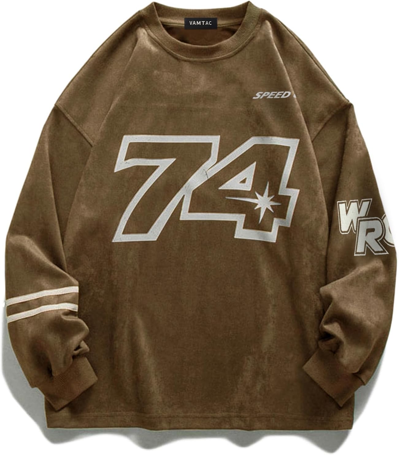 Vamtac Mens Oversized Sweatshirt Vintage Crewneck Streetwear Graphic Pullover Long Sleeve Round Neck Tops