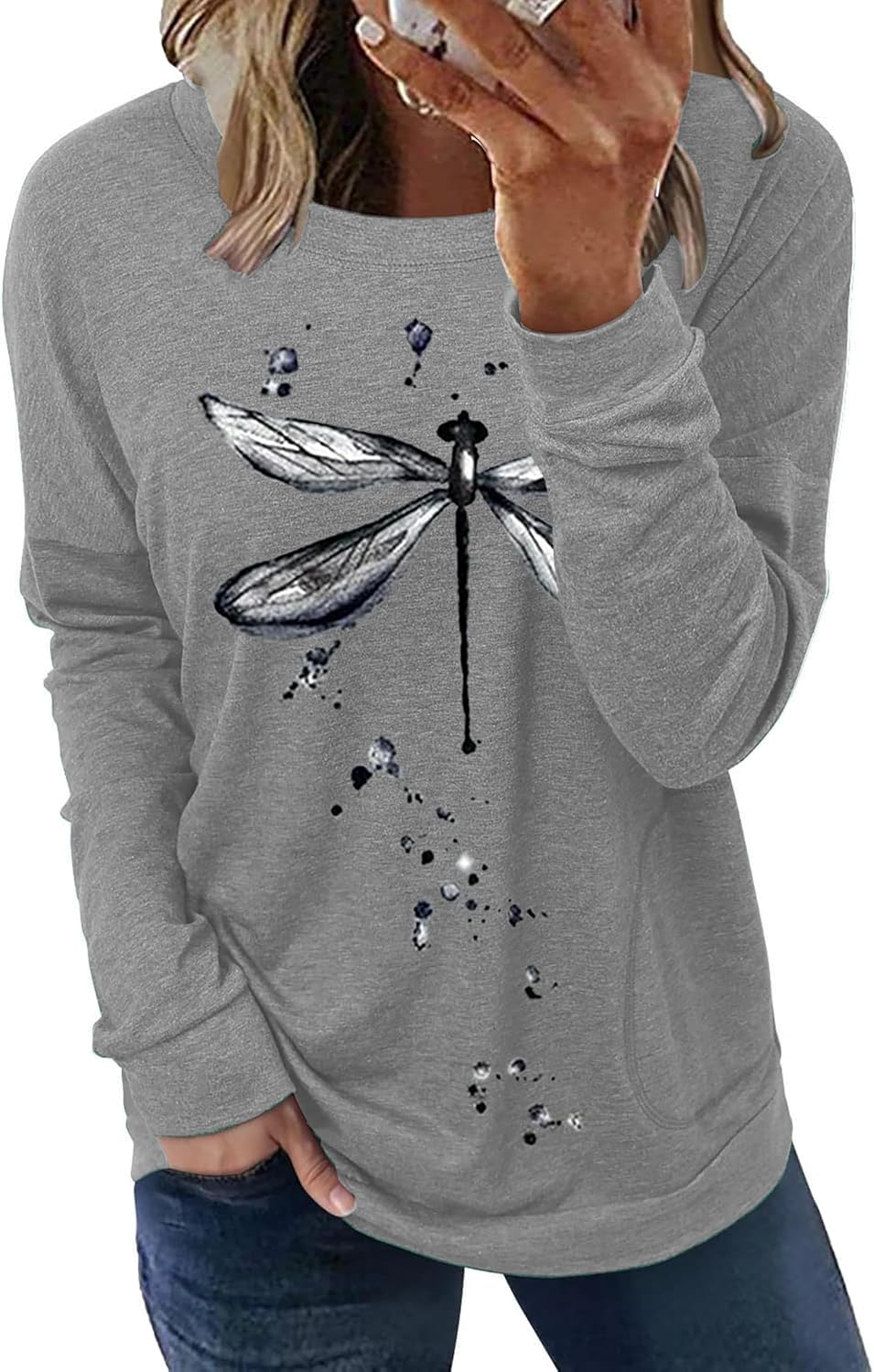Hount Womens Casual Loose Fit Shirts Long Sleeve Comfy T-Shirts Pullover Sweatshirts With Pockets