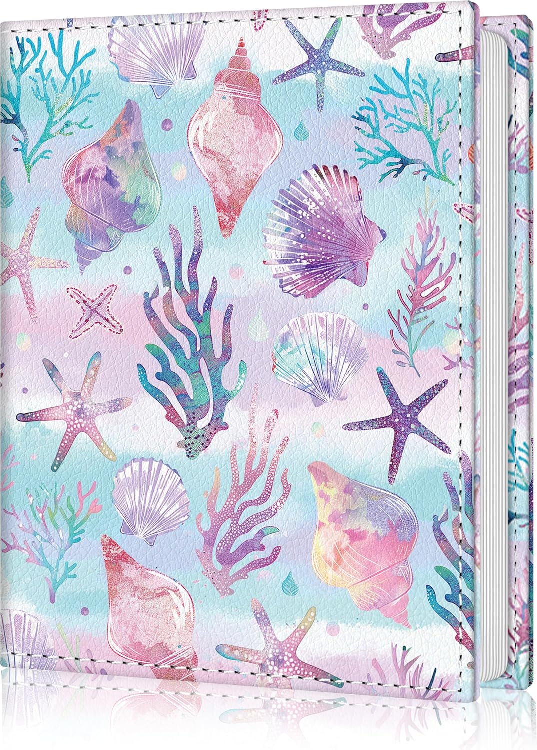 Photo Album 4x6, 56 Pockets Small Picture Book Ocean Creature Seashell Starfish Conch, Personalized Large Capacity Mini PU Leather Picture Album Gift for Family Graduation Wedding Travel