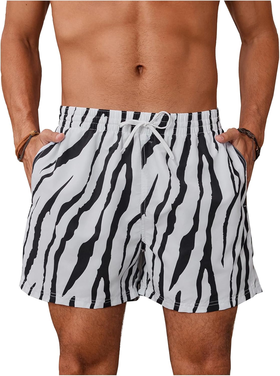 WDIRARA Men's Zebra Stripe Drawstring Waist Swim Trunks Beach Shorts Sports Running Bathing Suits with Mesh Lining