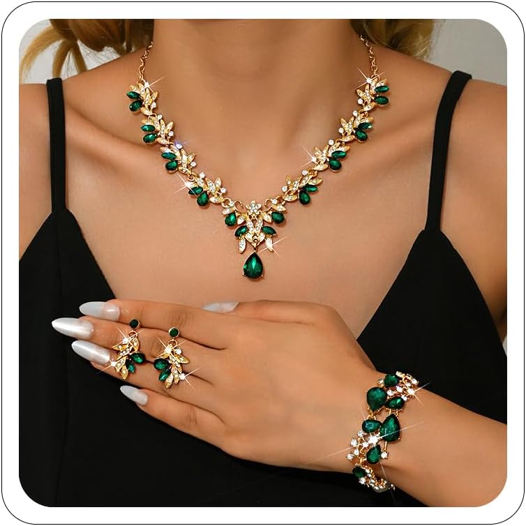 Wedding Jewelry Set for Brides Rhinestone Necklace Earrings Bracelet Set Wedding Bridals Bridesmaid Accessories Bridal Bridesmaid Jewelry Custome Accessories