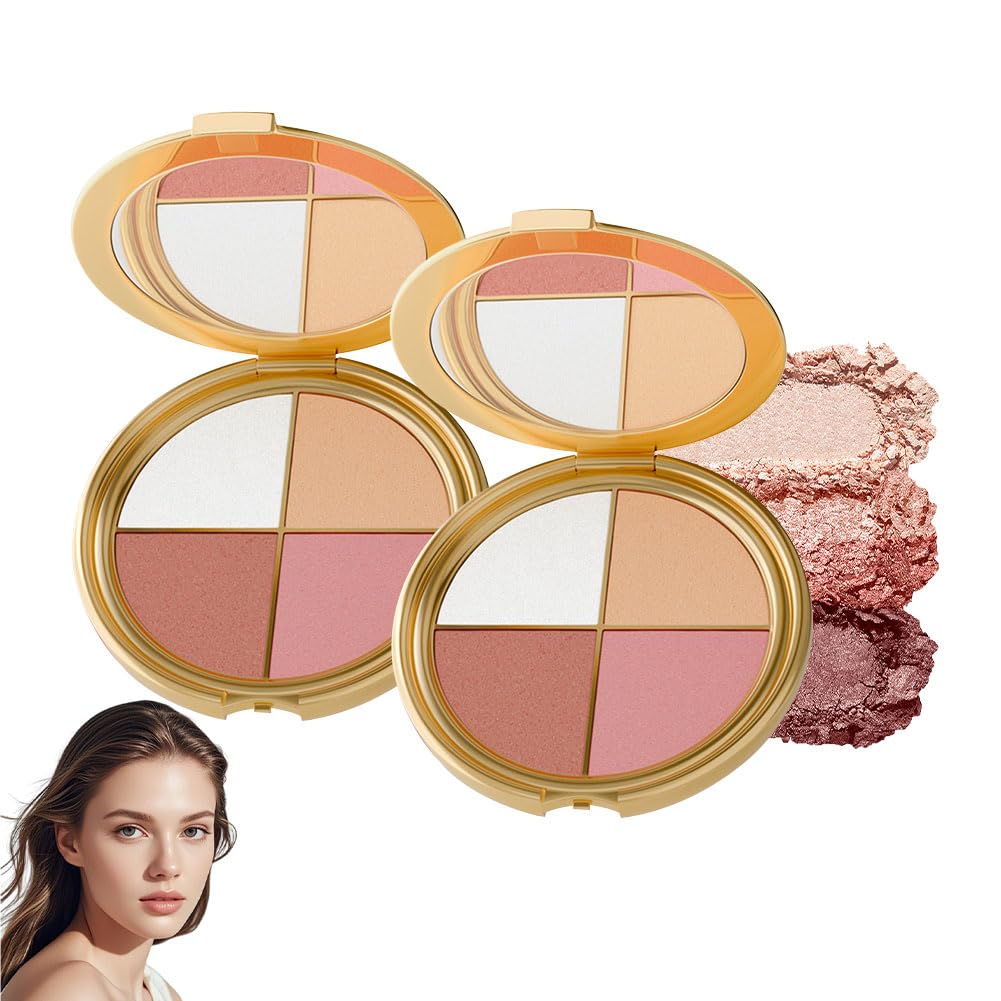 - Versatile All-in-One Makeup Palette:This beautifully curated palette combines eyeshadow and highlighter in one(3 soft matte highlighter tones and 1 glimmer tone) convenient compact, perfect for creating complete eye and cheek looks. The coordinated shades work harmoniously to enhance your natural features with effortless elegance