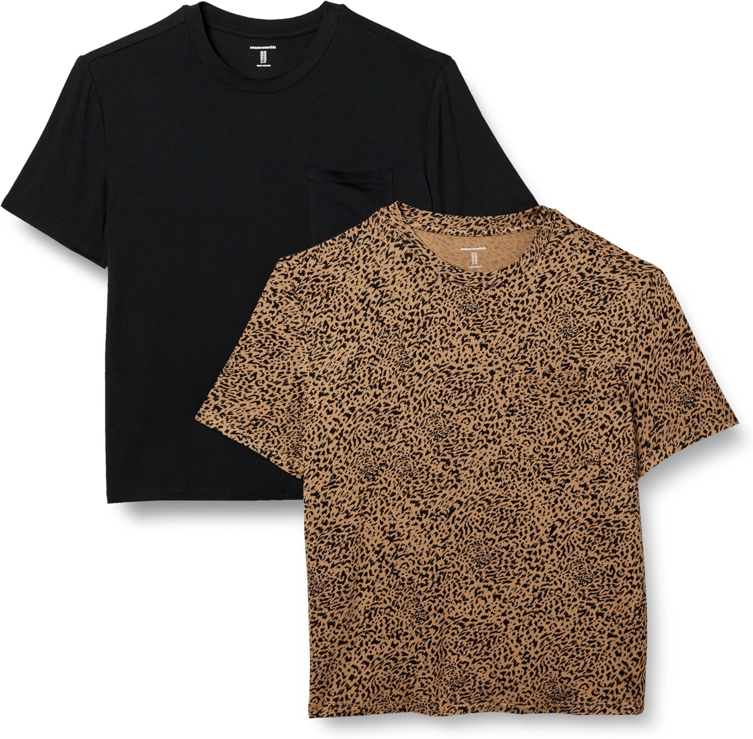 Amazon Essentials Women's Jersey Relaxed-Fit Short-Sleeve Crewneck Pocket T-Shirt, Pack of 2