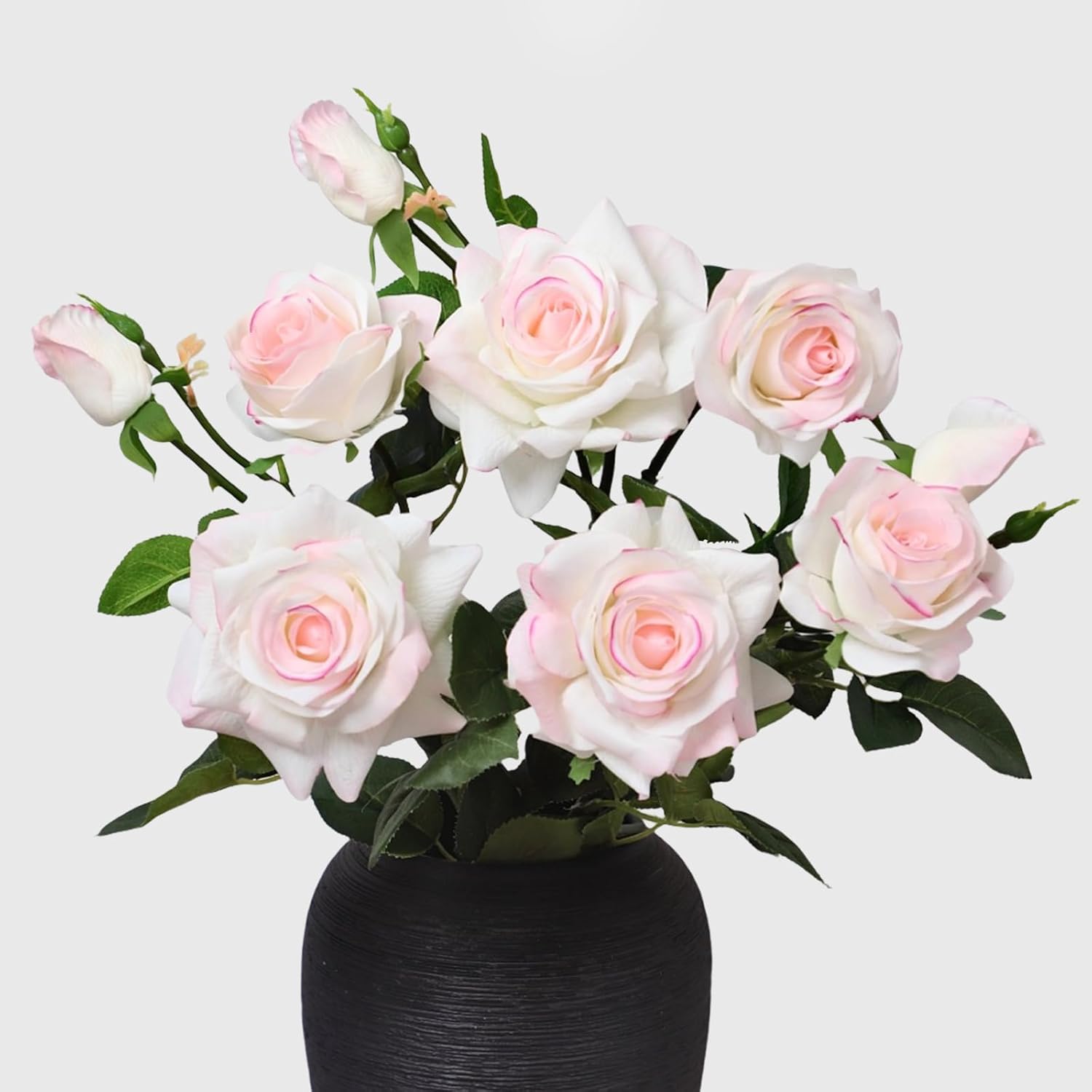 - SOFT BLUSH COLOR & ROMANTIC APPEAL: Features 3 blush pink roses stems, per stem with 3 blooms. These pink roses bring a soft, romantic tone to any space. Their delicate gradient mimics natural floral hues, ideal for elegant, feminine, or vintage-themed décor.