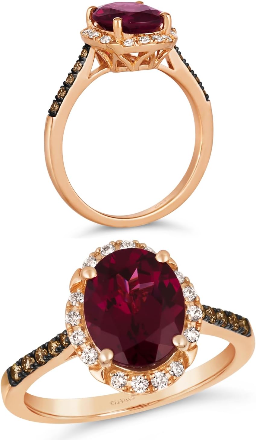 LE VIAN 1/4 Carat White or Chocolate Diamond Oval Halo Ring for Women I 14k Rose Gold Ring for Her w Garnet or Quartz (H-I/Brown, SI2-SI3, 0.24 cttw) Wedding Promise Anniversary Band Size 5 to 8.5