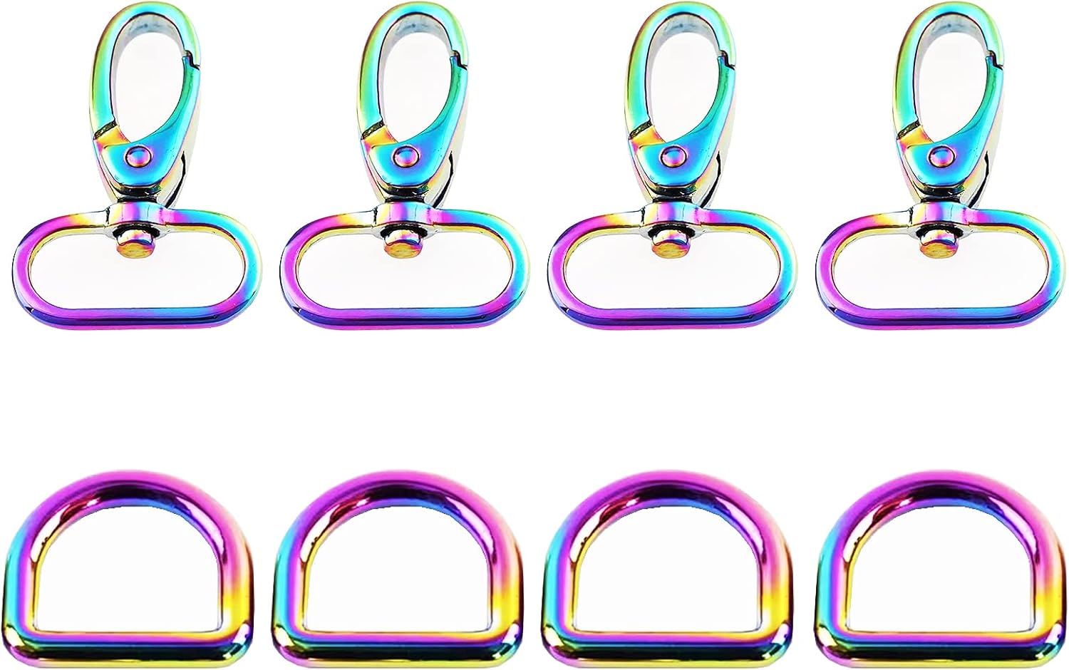 D Ring for Purse with Swivel Snap Hooks Clasps Metal Purse Hardware for Bag Making - 8 PCS 1Inch Rainbow Purse Hardware Bag Keychain