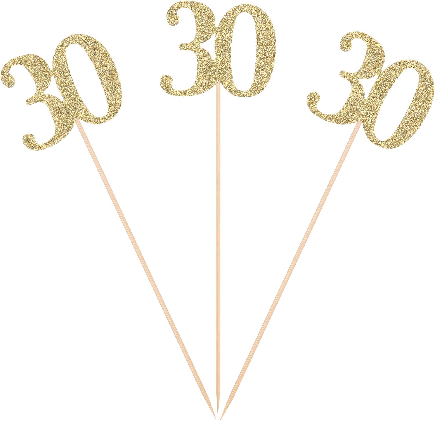 Pack of 10 Gold Glitter 30th Birthday Centerpiece Sticks Number 30 Table Topper Age Letter Decorations