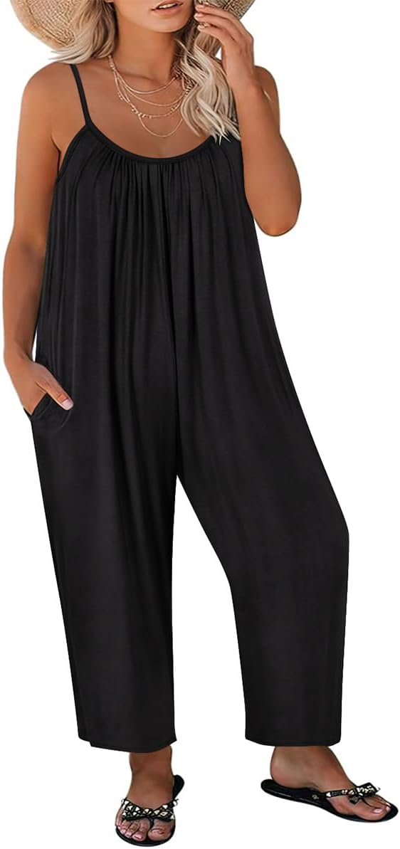 RITERA Plus Size Romper For Women Sleeveless Jumpsuits Adjustable Strap Long Wide Leg Pant Side Pocket Dressy Flowy XL-5XL