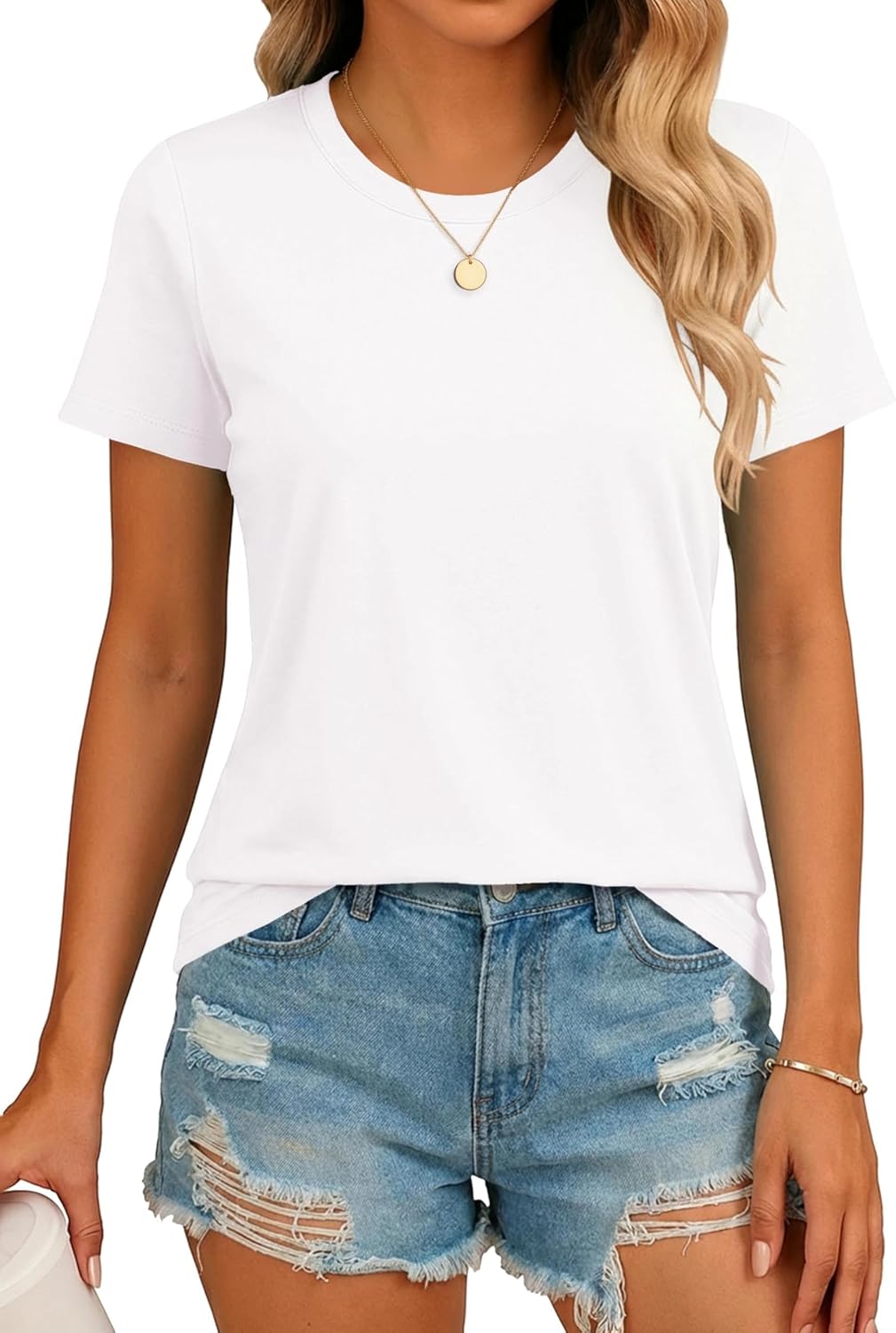 SMENG Women's Short Sleeve Cotton Blend Shirt Basic Crewneck Solid Color Tee Casual Fit T-Shirt UPF 50+ Workout Tops