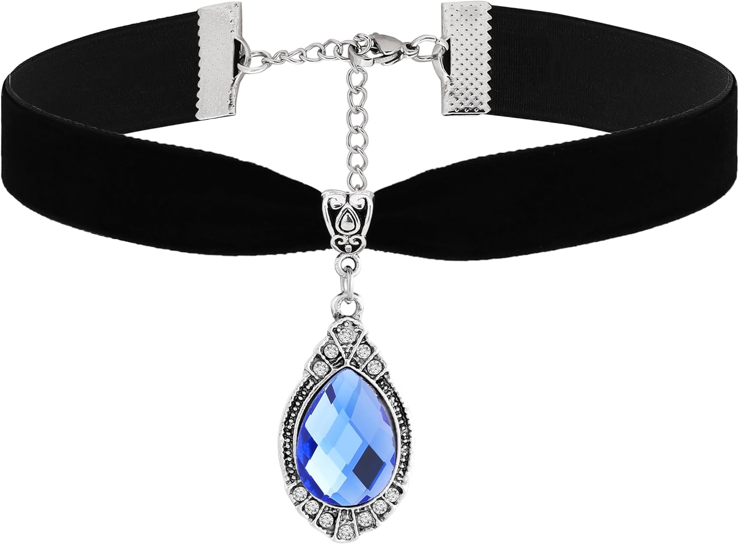 Sacina Blue Victorian Velvet Choker, Gothic Goth Choker Necklace, Vintage Costume Jewelry, Christmas Jewelry Gifts for Women