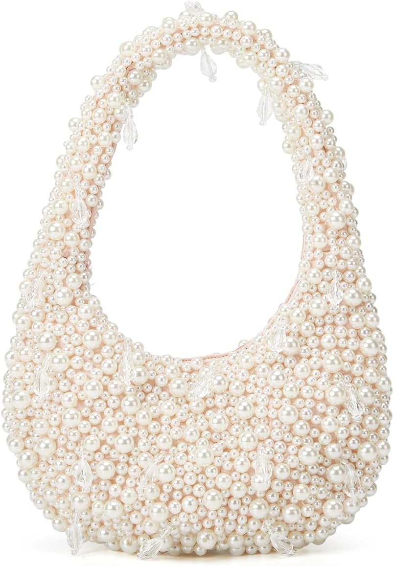 Trendy Pearl Shoulder Purse for Women Small Y2k Tote Bags for Party Rhinestone-Encrusted Designer Handbags