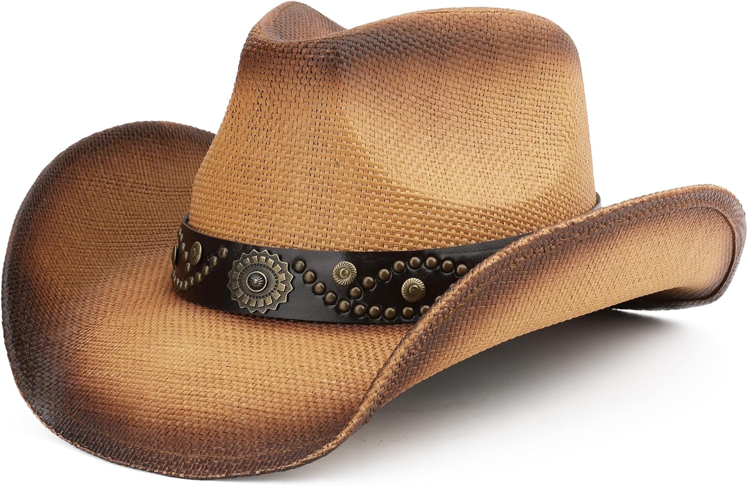 Adult Sun Straw Women Men Cowgirl Western Cowboy Hat Colored