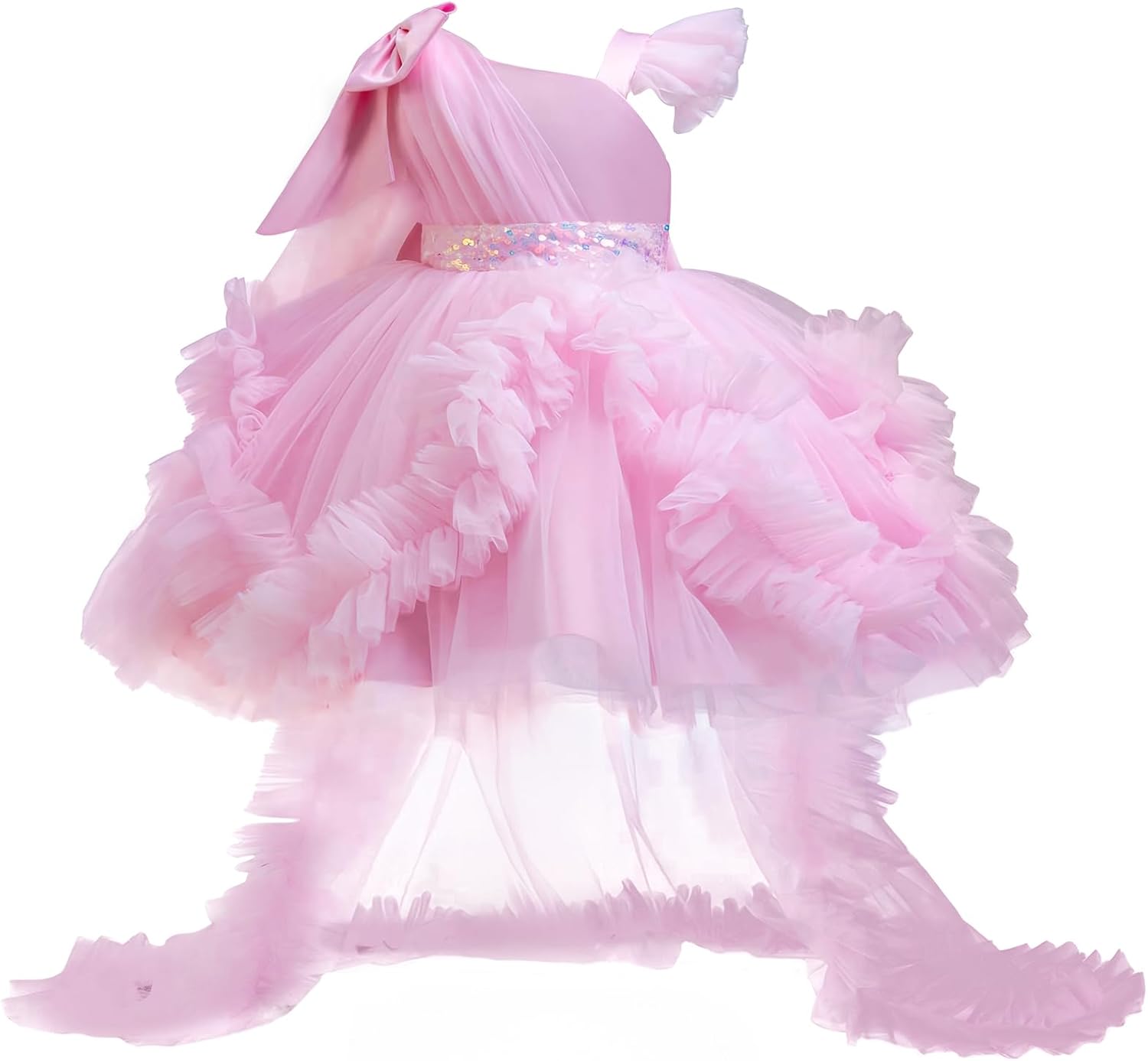 Lamgool Toddler Baby Girls Pageant Formal Dress Ruffle Tulle Elegant Bow Tutu Princess Ball Gown for Birthday Prom Party