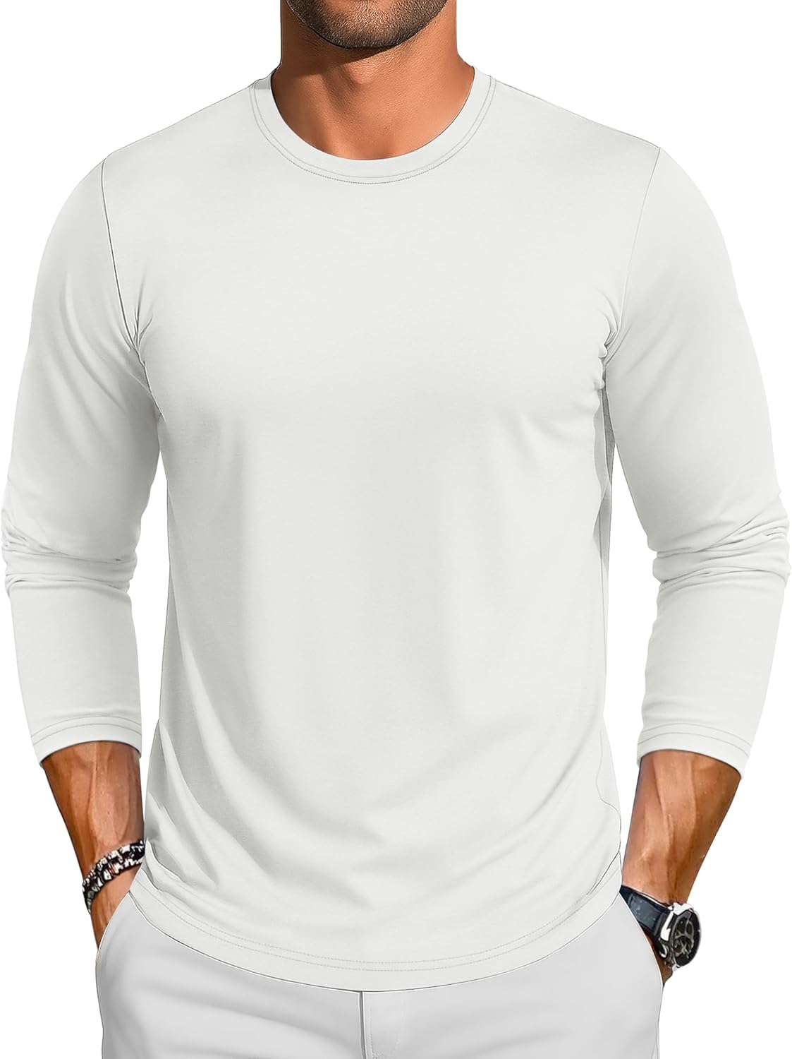 TACVASEN Long Sleeve Shirts for Men Cotton Soft Crew-Neck Moisture Wicking Mens Undershirt Comfort Solid Basic T Shirt