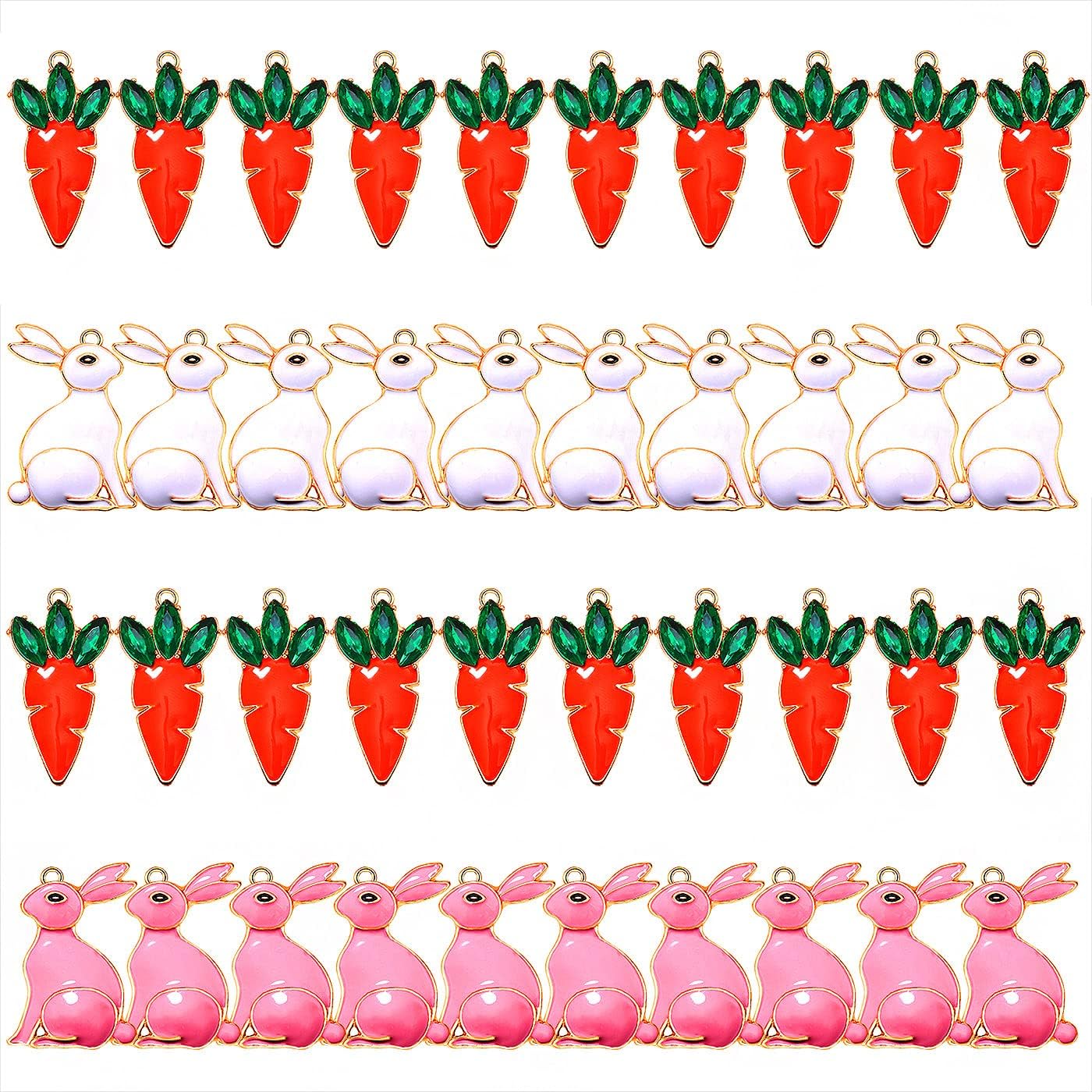 40PCS Easter Charms Enamel Bunny Carrot Egg Pendant Charms for Jewelry Making Cute Meatl Animal Rabbit Charms for Necklace Bracelet Earring Making DIY Crafts